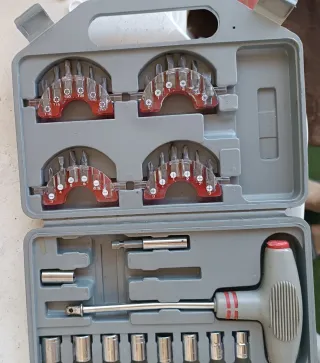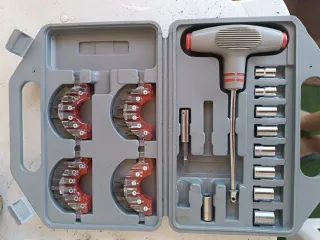 Práctico set de herramientas con mango en T. - Incluye puntas de destornillador y vasos. - Mango ergonómico para un mejor agarre. - Estuche organizador de plástico resistente. Visita mi perfil gracias