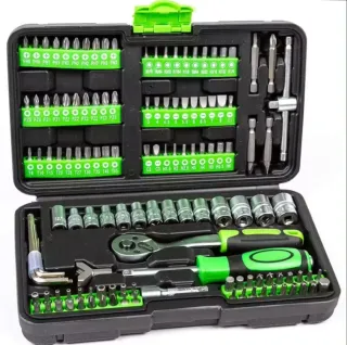 Completo maletín de herramientas con una gran variedad de puntas y vasos. - Incluye puntas de destornillador (PH, PZ, T, H). - Vasos de diferentes tamaños. - Mango de carraca. - Incluye dos cajas adicionales. - Marca: LaVendo.
