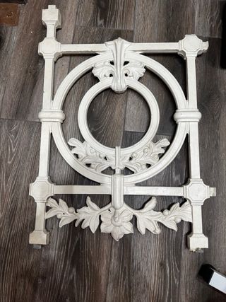 Elegante barandilla de forja con un diseño inspirado en la concha. - Diseño ornamental con motivos circulares y vegetales. - Color blanco roto. No acpto ofertas, lo siento. Del molde original. Foto 2/3 el estado actual. En la foto 4 muestro como puede quedar en un diseño interior. No se puede enviar por Wallapop por superar el peso máximo. Entrega en mano, Donostia.