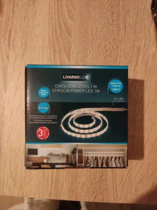 Tira de luces LED Livarnolux de 1 metro, ideal para iluminar espacios. Es cortable a la medida deseada y autoadhesiva. - Color: Blanco frío (6500 K). - Luminosidad aproximada: 1100 lm. - Contiene 72 LEDs. - Autoadhesiva para fácil instalación.