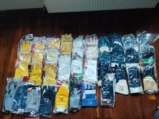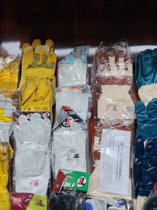 Lote de 38 pares de guantes para trabajos en granja, caseríos, transporte, etc. Provienen de antiguo stock. La gran mayoría son tallas 9 pero hay algúno talla 8 y alguno talla 10. Salen a 1.57 el par. Se pueden entregar a mano en zona de Gipuzkoa. Más guantes en mi perfil.