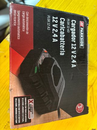 Cargador de batería Parkside 12V 2.4A. - Modelo: PLGK 12 A3. - Con desconexión automática de carga. - Compatible con baterías Parkside X12 Team.