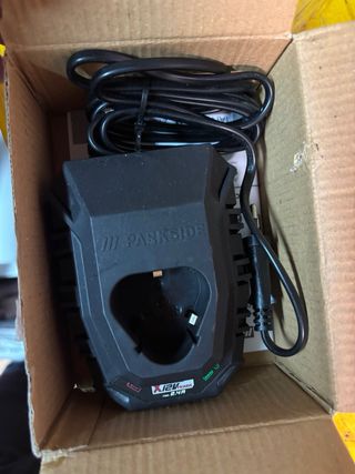 Atornillador de impacto Parkside Performance con una batería y cargador. Se ha usado tan sólo una vez con la carga que venía de serie y aún le queda carga a la batería. No se ha usado nunca el cargador. Dicen que conviene guardarlas a media carga, nunca cargadas del todo, por lo que no la he cargado. Está prácticamente nuevo. Lo compré hace 2 meses nuevo y no lo he usado más que un solo día. - Modelo: PASSP 20-Li C4. - Voltaje: 20V. - Incluye manual de instrucciones.