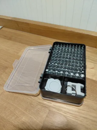 Set de destornilladores de precisión con 96 puntas intercambiables. - Incluye caja organizadora. - Puntas de diferentes tamaños y tipos. - Mango ergonómico.