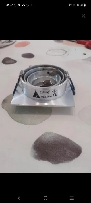 4 unidades de focos de techo empotrables. Son de inox, con un diseño elegante y moderno. - Medidas: 8cm de diámetro. - Potencia máxima: 50W. - Color plata. Precio suelto 5€