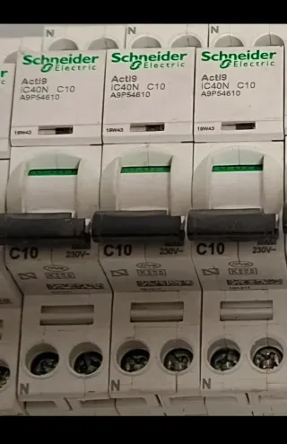 12 magnetotérmicos de la marca Schneider Electric. Comprando los 12, 40€ - Modelo Acti9 iC40N. - Intensidad nominal de 10A. - Tensión nominal de 230V~.