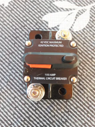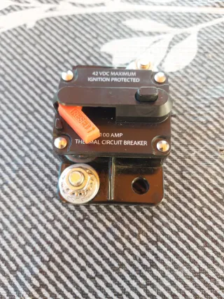 Disyuntor térmico de 100 amperios y Máximo de 42 V DC Protección contra ignición. Diseño robusto y compacto. Sirve para fotovoltaica,coches,embarcaciones etc.