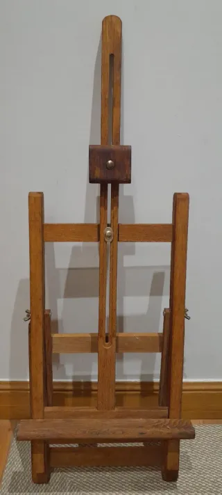 Caballete de madera estilo Van Gogh, perfecto para artistas. Muy buena calidad - Ajustable en altura. Maleta de pintura Van Gogh (las manchas que se ven en la caja son así, tanto por fuerade la caja como la paleta para la pintura; osea están aposta para darle un toque más artístico, no los he hecho yo). Contiene: - 10 pinturas (alguna está usada muy poco) - Pañuelo (un poco manchado, pero se puede utilizar perfectamente) - Los botes que se ven en ma foto (sin abrir) - Dos huecos de metal para hacer mezclas (sin uso) - Paleta - Cuaderno para bocetos (sin uso) - Dejo unos pinceles ss de quire pero están secos Dos lienzos de regal