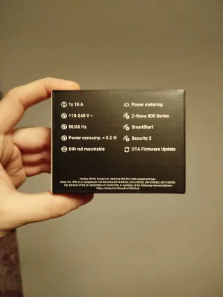 Dispositivo Shelly Wave Pro 1PM. Tiene z-wave. Se instala en carril DIN. Mide una fase. Nunca sacado de la caja. Comprado directamente a Shelly Europe.