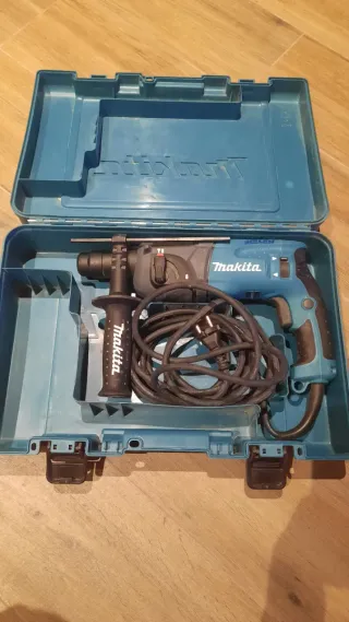 Martillo rotativo Makita HR2230 en su maletín original. - Incluye martillo, empuñadura auxiliar y cable de alimentación. - Maletín de plástico resistente para transporte y almacenamiento.