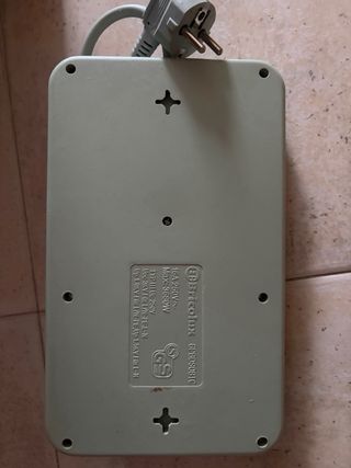 Regleta de la marca Bricolux con protección contra sobretensiones. Cuenta con 8 enchufes y un interruptor general. - 8 enchufes Schuko. - Interruptor ON/OFF. - Protección contra sobretensiones. - Indicador luminoso de tierra. - Conexiones de red (RJ45) y coaxial (TV). - Potencia máxima: 3680W.