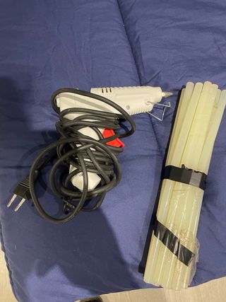 Se vende pistola de silicona con un paquete de barras de silicona. - Pistola de silicona blanca. - Incluye un paquete de barras de silicona.
