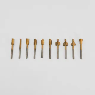 Fresas para Dremel, ideal para trabajos de precisión. - Incluye 10 fresas de diferentes formas y tamaños. - Fabricadas en metal resistente. - Vienen en un estuche organizador de plástico transparente.