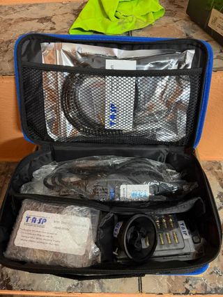 caja de almacenamiento Dremel con tapa azul translúcida y base blanca. + los acesorios que estan en la foto.