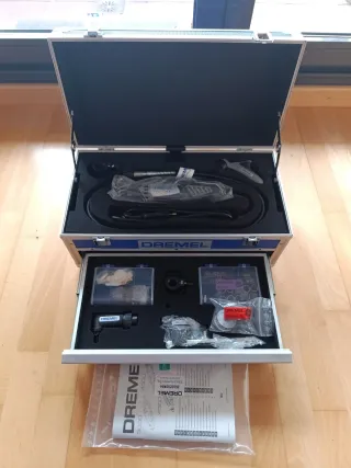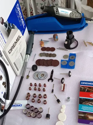 Kit de herramientas Dremel profesional, ideal para trabajos de precisión. - Incluye dremel y accesorios. - Estuche organizador con compartimentos. - Ideal para lijar, pulir, cortar, grabar y miles de cosas mas. Nunca se ha usado lo estrenarías tú. "PUEDEN VER MIS CALIFICACIONES PARA COMPROBAR MI FIABILIDAD"