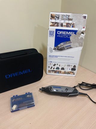 Herramienta Dremel 4250 de alto rendimiento con velocidad variable. Incluye un maletín y 45 accesorios para diversas tareas. - Incluye 45 accesorios. - Velocidad completamente variable. - Incluye maletín para almacenamiento y transporte. Nuevo. Solo se prendió una vez para comprobar correcto funcionamiento