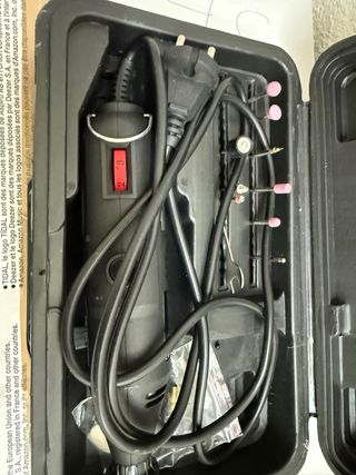 Estuche completo de herramienta multiusos , ideal para trabajos de bricolaje y manualidades. - Incluye una gran variedad de accesorios para diferentes tareas. - Maletín organizador con compartimentos para cada pieza. - Herramienta principal con cable de alimentación.