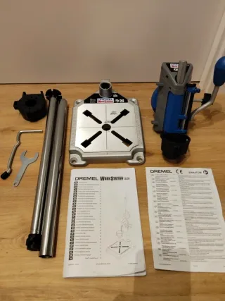 Soporte Dremel Workstation 220 para taladro. - Base metálica robusta con guías de medición. - Columna de soporte vertical. - Palanca de bajada con mango ergonómico. Se vende lo que se ve en la imágen, ya no tengo la caja.