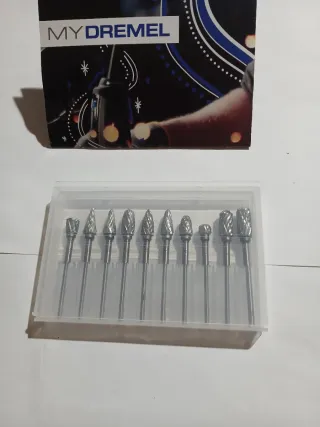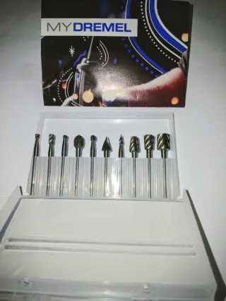 Set de fresas de tungsteno para herramienta Dremel. Incluye varias formas para diferentes usos. - Material: Metal. - Incluye 10 fresas para metales ,hierro,aluminio. ect....