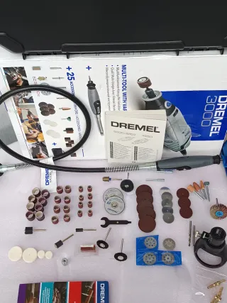 Herramienta Dremel 3000 en buen estado, lista para usar. - Incluye maletín para guardarla. - Viene con varios accesorios para diferentes trabajos. - Incluye manguera flexible para mayor maniobrabilidad.