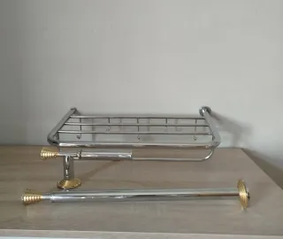 Conjunto de accesorios para baño de la marca Roca. Gran calidad y durabilidad: - Toallero de ducha: 50 cm anchoX 30 cm fondo X 10cm alto. Lleva perchas para albornoz. Precio 65 euros - Toallero lavabo 50 cm largo. Precio 30 euros. - Portarrollos 23 largo X 9 cm. fondo. Precio 30 euros - Fabricados en acero inoxidable - Combinación de colores dorado y plateado. - Se vende en conjunto o por separado.