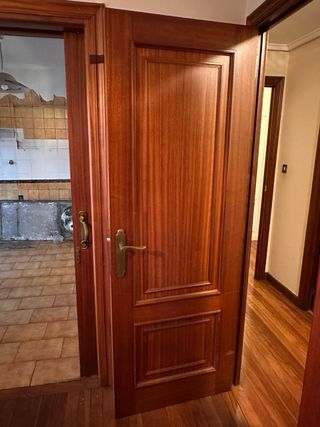 Puerta de madera de estilo clásico, ideal para interiores. Su acabado brillante resalta la veta de la madera. - Puerta con cristal de dibujo y puertas normales de izquierdas y derechas. - Puertas normales. - 2 Puertas de cristal. - Tiene jambas. - Medida estandar 0,72m x 2m. - Precio negociable
