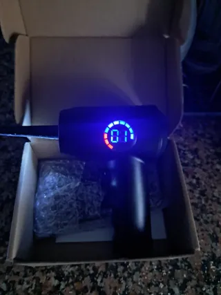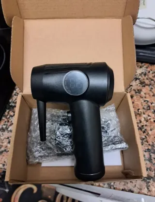 Dispositivo de aire comprimido portátil, funciona con batería recargable. - Diseño ergonómico en color negro. - Pantalla digital con indicadores de nivel. - Batería 3000 mAh, 4 niveles de potencia. - Boquillas incluidas de diferentes tamaños y cepillo. - Viento fuerte - Carga usb - Diseño ligero - Luz led