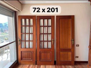 Puertas de madera maciza con diseño clásico y elegante, ideal para interiores. - Fabricada en madera de calidad. - Paneles de cristal para mayor luminosidad. - Tirador metálico incluido. 3 puertas sin cristales 72x200 2 puertas con cristales 72x200 3 puertas sin cristales 62x200 2 juegos de puertas correderas 200cm