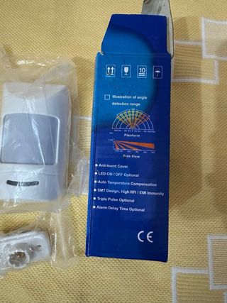 Sensor de movimiento infrarrojo prácticamente nuevo. Ideal para automatizar luces. - Detecta movimiento hasta 10m (a 22ºC). - Ángulo de detección de 140º. - Alcance de luz: 3 a 1000 lux (ajustable). - Temporizador: 5 seg - 7 min (ajustable). - Consumo: 0.45W (estático 0.1W). - Funciona con 110V/AC-240V/AC.