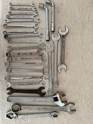 Conjunto de llaves inglesas de diferentes tamaños y tipos. - Incluye llaves fijas y de carraca. - Fabricadas en acero. - Variedad de medidas para distintas aplicaciones. Acepto ofertas para una unidad o el lote completo. Ubicación; Ibiza/Palma.