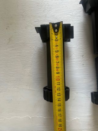 Lote de 14 patas ajustables de plástico negro para muebles. Son ideales para nivelar y dar estabilidad a tus muebles ya que hay bastantes metros paea ajustar cimo ves en medidas fitos AMPLIO MARGEN PARA NIVELAR - Material: Plástico resistente. - Color: Negro. - Cantidad: 14 unidades.