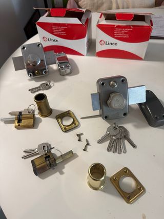 Se venden cerraduras 2 Lince con sus llaves y accesirios y 2 cerraduras con sus llaves. El precio de solo una cerradura Lince son 49€, vendo todas por 50€.