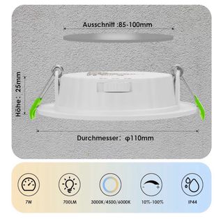 Pack de seis focos LED empotrables de 7W cada uno. Son regulables en intensidad para adaptar la luz a cada momento. - Diseño redondo y moderno. - Voltaje: 230 V. - Color: Blanco.