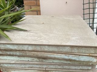 Baldosa autoportante y aislante. Se instala en cubiertas para aislar del frio y el calor. Se pueden poner sobre la tela asfáltica para hacer practicable una terraza o colocar como revestimiento de alguna fachada para aislar un muro de una casa o colocarla en el suelo para realizar un camino... Esta realizado como si fuera un SATE, una pieza de 60*60 de poliestireno pegada con cemento cola flexible a unas baldosas de porcelanico de 30*60 imitación piedra. Hay 55 ud. El precio es por unidad (60*60) y si compra el lote entero 500€. Una tercera parte que gaste solo en comprar el material...