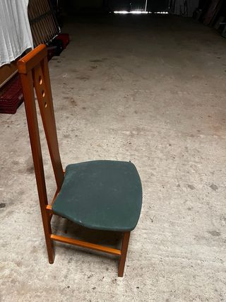Conjunto de 6 puertas de madera con un acabado oscuro y vetas marcadas. Cada puerta cuenta con un tirador metálico. 6 sillas de comedor 1 mesa de madera antigua. - Material: Madera - Color: Marrón oscuro - Incluye: 2 puertas y 2 tiradores 10€ ud pack completo 100€