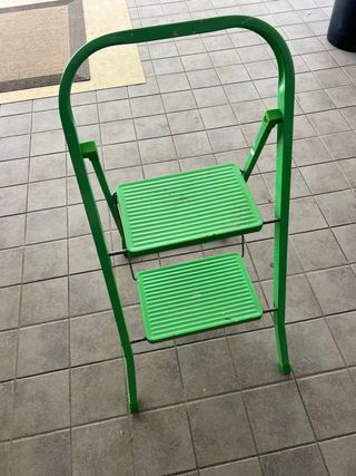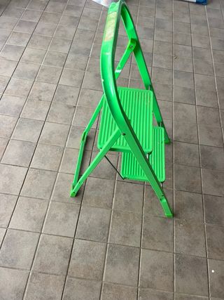 Escalera compacta y fácil de guardar. Ideal para tareas domésticas o para alcanzar lugares altos. - Color verde. - Dos peldaños. - Diseño plegable. - clic de seguridad - super resistentes - bien cuidadas En mi perfil tengo mas cosas
