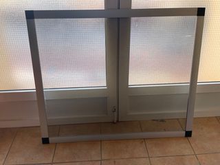 Mosquitera de marco blanco para ventana corredera. Protege tu hogar de insectos de forma eficaz. - Marco de aluminio blanco. - Malla de fibra de vidrio. - Medidas adaptables a ventanas correderas. La malla se ha roto un poco arriba como se aprecia en la foto , se puede cambiar o arreglar.