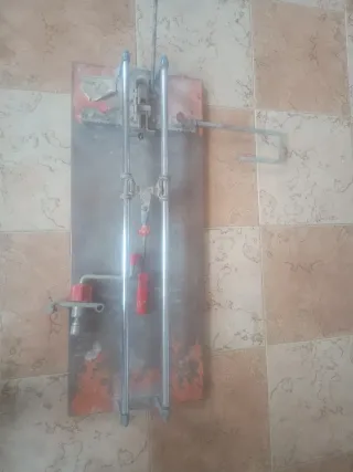 Cortadora de azulejos profesional Rubi TS60. Buen estado. El tirador del separador tiene holgura pero se sirve con una barra que ajusta mejor que el original y funciona bien. - utensilio para corte en redondo. - Guías de acero cromado. - caja acero transporte