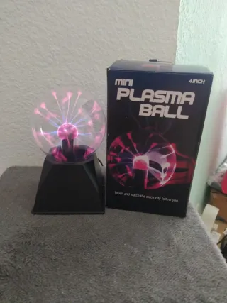 Lámpara de plasma decorativa. 16x10 cm. - Diseño compacto y llamativo. - Base negra. - Esfera de cristal.