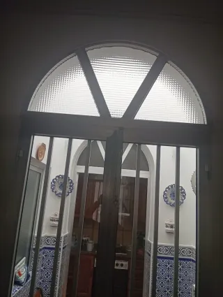 Se vende ventana con cierro. - Estructura de aluminio. - Parte superior acristalada con diseño. - Cierro con barrotes.