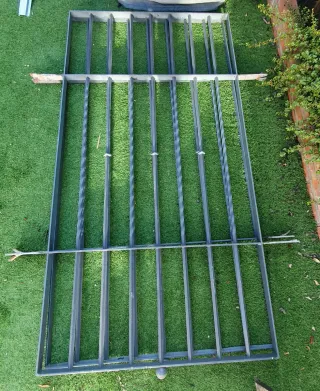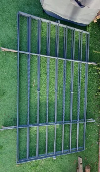 Conjunto de rejas de hierro forjado, ideales para balcones o ventanas. - Diseño clásico y elegante. - Material: Hierro forjado. - Medidas; 2'75 x 0'50 El precio son por unidad 15€ y solo tengo