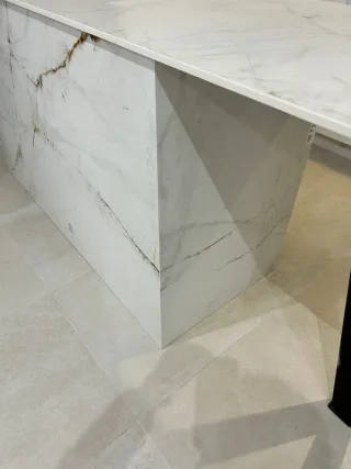 Encimeras de cocina con un diseño elegante y moderno. Porcelánicos y piedras naturales - Combinación de mármol y piedra. - Tonos blancos y marrones.
