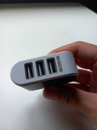 Enchufe 3 en 1. Ideal para meter 3 puertos usb o cargadores.