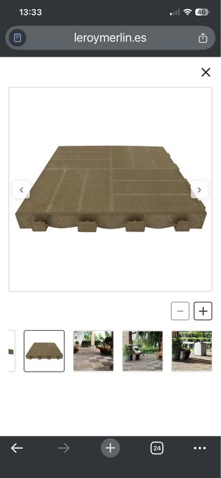 Se venden 60 baldosas de composite en color marrón, con unas medidas de 40x40 cm. - Material: Composite. - Color: Marrón. - Medidas: 40x40 cm.