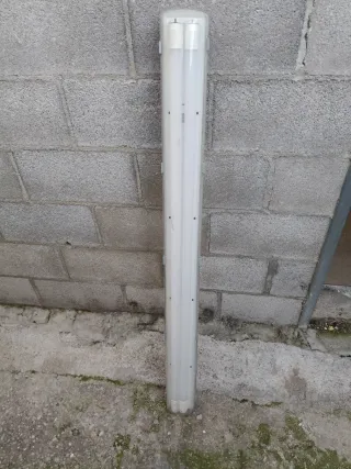 Pantalla de iluminación con dos tubos fluorescentes. - Carcasa protectora transparente. - Montaje para pared o techo.