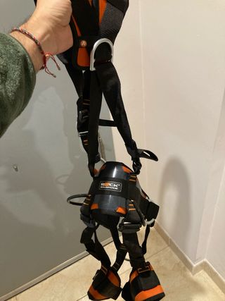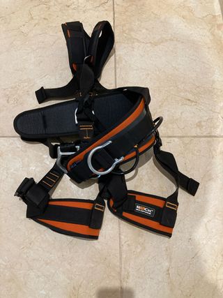 Arnés de seguridad Rock Empire Skill Uni en color negro y naranja. Diseñado para ofrecer comodidad y seguridad. - Cinturón y perneras acolchados. - Hebillas de ajuste rápido. - Anillo de suspensión frontal. - Puntos de anclaje laterales.