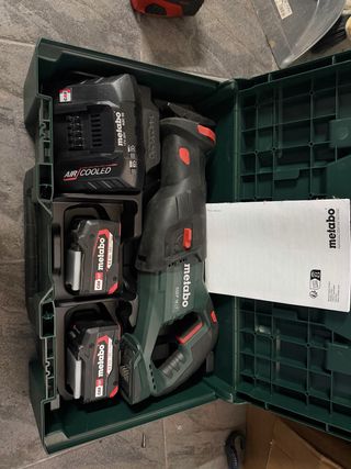 Sierra sable Metabo SSEP 18 LT con dos baterías y cargador. - Incluye sierra sable Metabo SSEP 18 LT. - Dos baterías Metabo CAS 4.0 Ah 18V. - Cargador Metabo ASC 55 12V-36V. - Maletín de transporte Metabo. No Contesto Ofertas