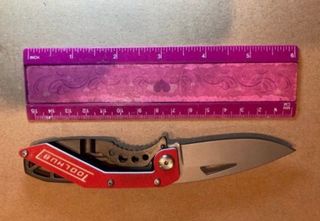 Navaja desplegable con un diseño moderno y práctico. - Hoja de 7 cm. - Incluye clip para sujetar.