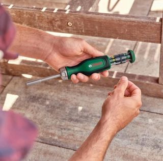 Destornillador multiusos de la marca Bosch con un set de 12 piezas. - Mango ergonómico para un agarre cómodo. - Incluye puntas de diferentes tipos y tamaños. - Mecanismo de giro reversible.