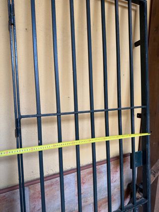 Reja de seguridad para puerta, fabricada en metal resistente. Ideal para proteger accesos. - Barras verticales de seguridad. - Marco metálico negro.